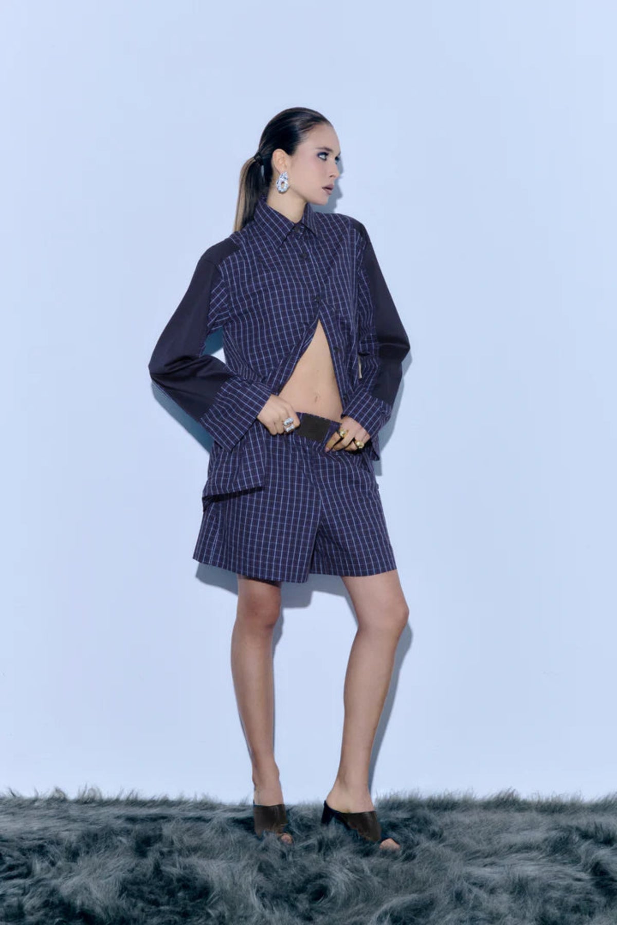 The Daybed 02 Oversized Pajama Shorts in blue plaid are your new go-to for easy, stylish comfort. Inspired by classic sleepwear and reimagined with a modern twist, these shorts are made from 100% breathable cotton for all-day softness and movement. The oversized fit gives a relaxed silhouette that sits comfortably on the waist and falls effortlessly on the body. The blue checkered print adds a fresh, laid-back vibe, while the small faux leather label detail gives a subtle nod to refined design. Whether you’re lounging at home, styling a relaxed streetwear look, or heading to a weekend getaway, these shorts adapt to your lifestyle without compromising on style. Pair with the matching Daybed 02 Shirt or mix and match with your favorite basics. Made for those who value ease, expression, and quiet statements.