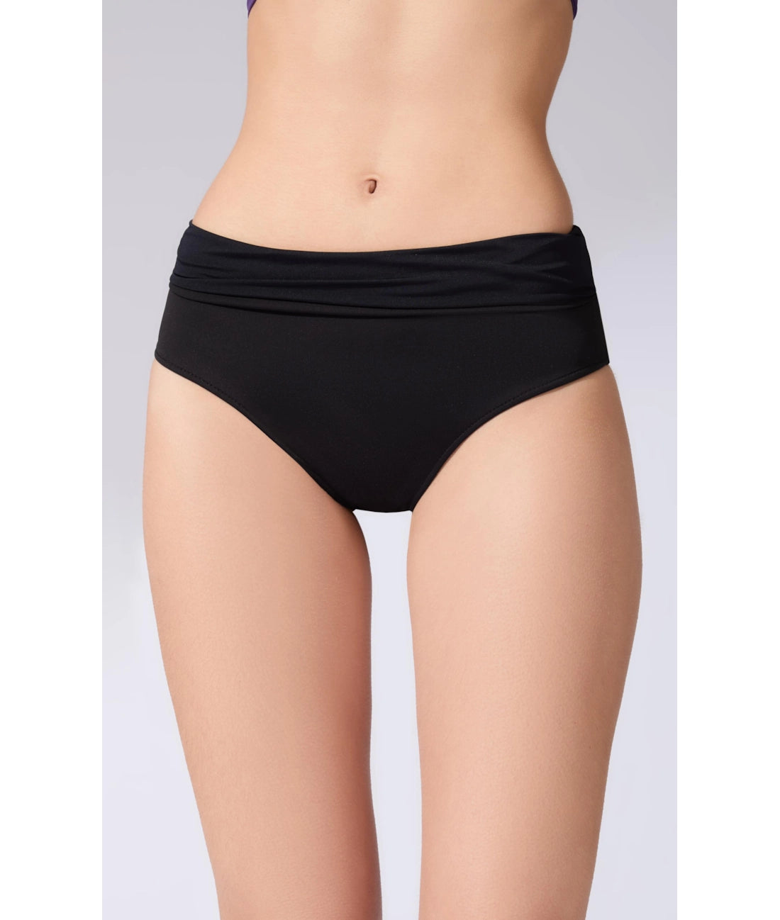 This bikini by Salinas is made for women who want smoothing support without sacrificing style. Its high rise waist gently hugs the midsection, creating a clean line under, dresses or relaxed shirts. The double layered fabric through the front and back offers a lightly shaping effect, helping you feel secure and supported while still completely comfortable. Cut higher on the leg, it subtly elongates the silhouette and flatters different body shapes, from curvier figures to more athletic builds. The full yet modern back coverage makes it ideal for days when you want to move freely on the beach, in the pool or on a boat without worrying about adjustments. Crafted in soft, stretchy and quick dry material, this bottom is an easy choice for long holidays and swimming. A black bikini for a sleek, minimalist look.
