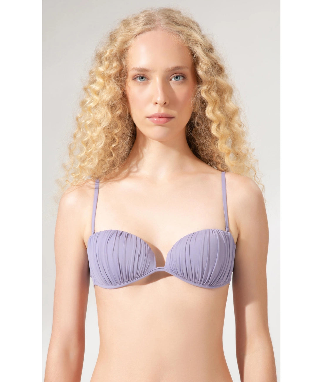 Elegant and softly sculpted, this bikini set in a delicate lavender hue blends modern femininity with effortless sophistication. The balconette style top features gentle underwire support and subtle gathered detailing that enhances natural curves while maintaining a refined, comfortable fit. Adjustable straps and a back tie closure allow a personalized silhouette that feels secure yet light against the skin. The matching bottom is designed with a smooth, clean waistband that sits perfectly on the hips, creating a flattering line and elongating the legs. Crafted from soft, high quality stretch fabric, the set moves naturally with the body while maintaining its elegant structure. Its understated tone evokes calm summer mornings and sunlit coastlines, offering a timeless alternative to classic neutrals. Ideal for refined beach days, yacht escapes, or elevated poolside moments, this bikini captures the essence of relaxed luxury. Where simplicity, confidence, and contemporary design meet in perfect harmony, celebrating modern effortless summer elegance with subtle sensuality and timeless resort style refined spirit.