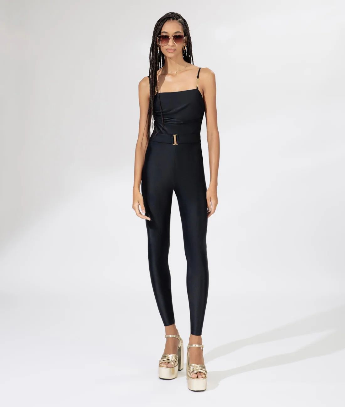 The California Black Jumpsuit is a sleek and modern piece designed for effortless style and comfort. Crafted from a high quality polyamide and elastane blend, this jumpsuit offers a soft, stretchy fit that mimics the look and feel of lycra, providing a smooth silhouette that flatters every body shape.
