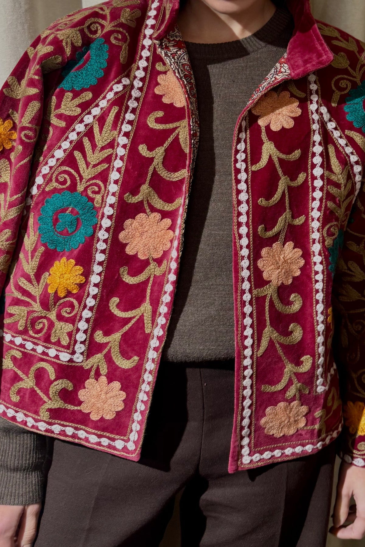 This exquisite handmade jacket is crafted in Jaipur, India, using traditional artisanal techniques passed down through generations. Each piece is created with care and precision, celebrating the beauty of slow fashion and sustainable craftsmanship. Made from high-quality natural materials, the jacket offers both comfort and durability while maintaining a soft, breathable texture. Its unique color palette combines delicate shades of pink and blue, enhanced by elegant caramel details that add warmth and sophistication to the overall design. The artisanal stitching and subtle hand-finished touches make every jacket one of a kind, reflecting the cultural richness and creativity of Jaipur’s textile heritage. Perfect for any season, it can be styled effortlessly for casual or refined looks. More than just a garment, this jacket tells a story of tradition, artistry, and mindful fashion a timeless piece that brings color, authenticity, and character to your wardrobe.
